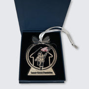 NEW! Celebrate the true meaning of the season with this year’s holiday ornament. Crafted in a polished chrome metal finish, this elegant ornament features a house silhouette – a powerful symbol of the Foundation’s core missions: providing mortgage-free homes to fallen first responder families, building specially-adapted smart homes for injured veterans and first responders, and housing our homeless veterans.